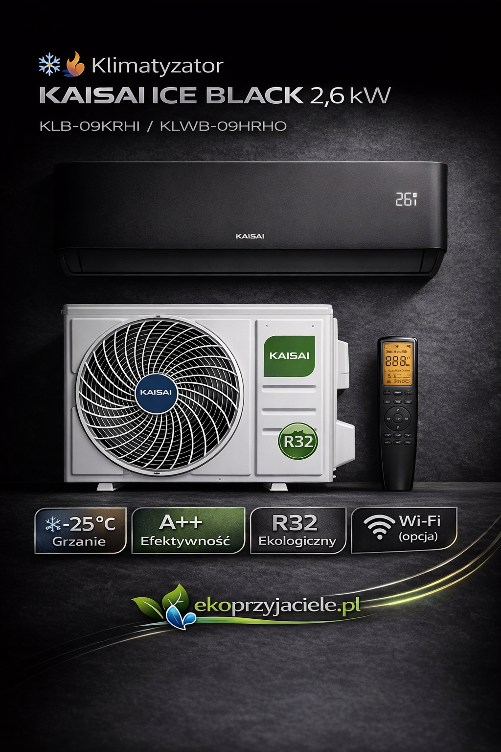 ❄️🔥 Klimatyzator KAISAI ICE BLACK 2,6 kW